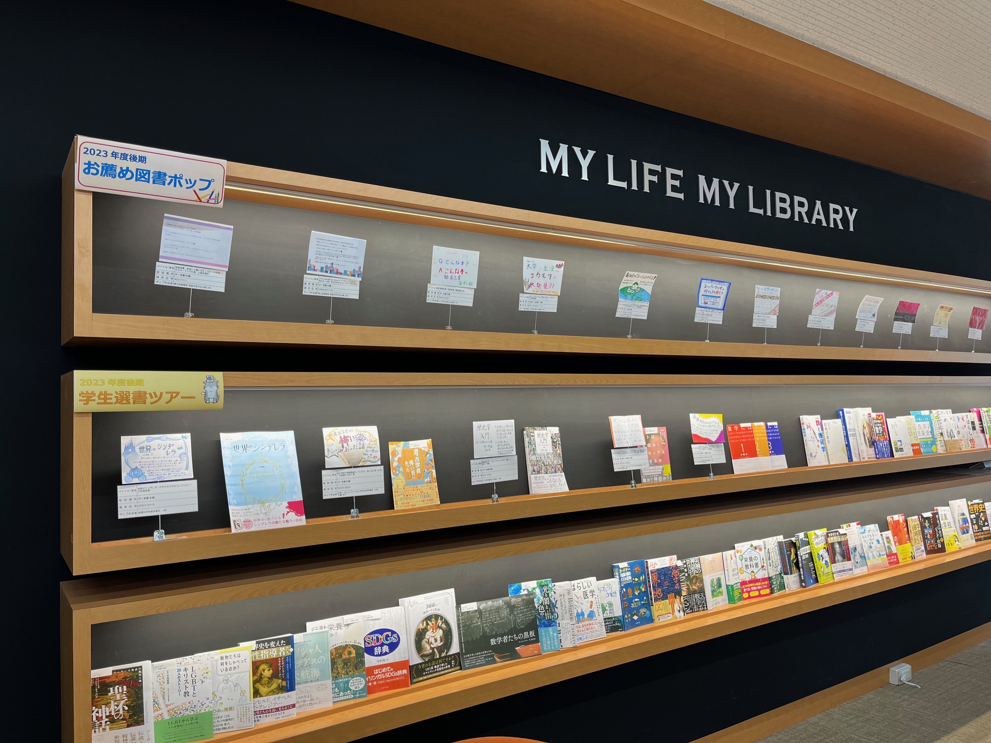 2023年度前期「学生選書ツアー」で、参加した学生の皆さんが本を選び、その本の魅力を伝えるPOPを作成しました。