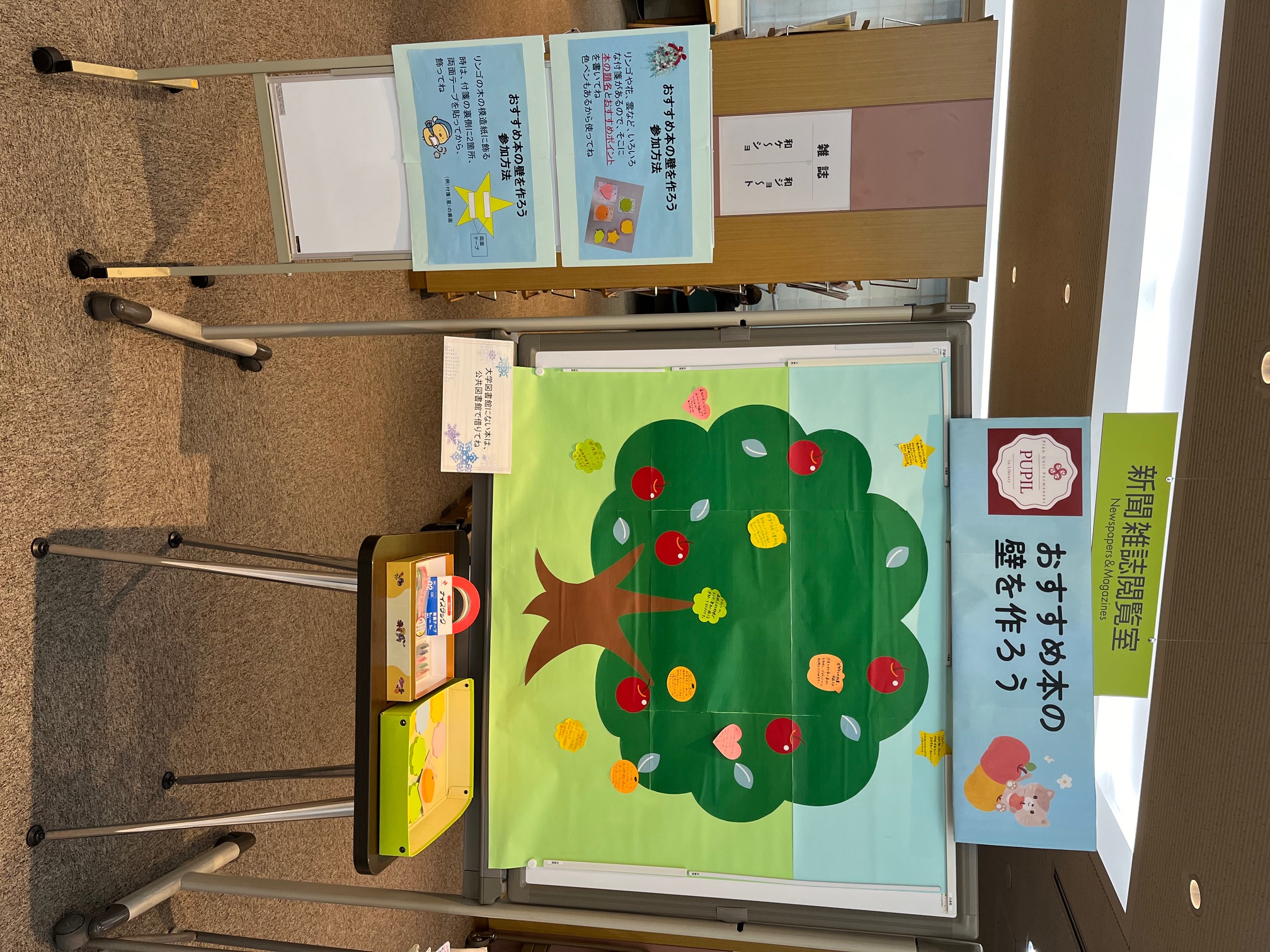 12月4日より、新聞雑誌閲覧室前にて、図書館常設企画隊PUPILによる企画「おすすめ本の壁を作ろう!」を実施中です。